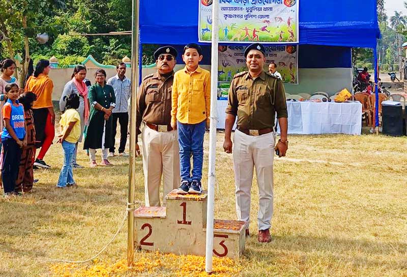 স্টিং নিউজ: ধুবুলিয়া থানার উদ্যোগে রবিবার অনুষ্ঠিত হল বার্ষিক ক্রীড়া প্রতিযোগিতা ২০২৫। ধুবুলিয়া থানা সংলগ্ন ফুটবল মাঠেই এদিনের ক্রীড়া প্রতিযোগিতার আয়োজন করা হয়। এই ক্রীড়া প্রতিযোগিতা চলবে ৭ ডিসেম্বর থেকে ৯ ডিসেম্বর পর্যন্ত। কৃষ্ণনগর পুলিশ জেলার অন্তর্গত ধুবুলিয়া থানা ও নাকাশিপাড়া থানার মধ্যে অনুষ্ঠিত ফুটবল প্রতিযোগিতায় দুর্দান্ত খেলায় চ্যাম্পিয়ন হয় ধুবুলিয়া থানা।